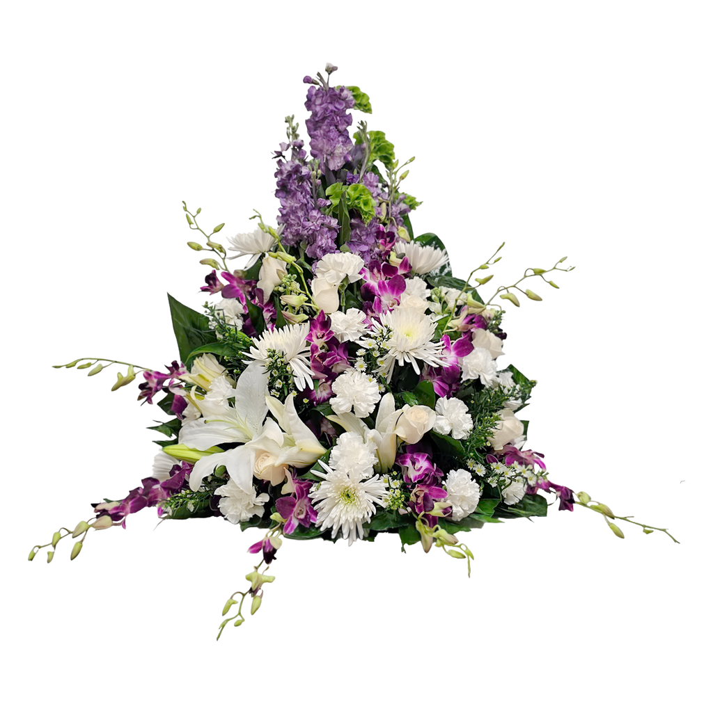 Arreglo de crisantemos, claveles, rosas, lirios,stock y orquídeas